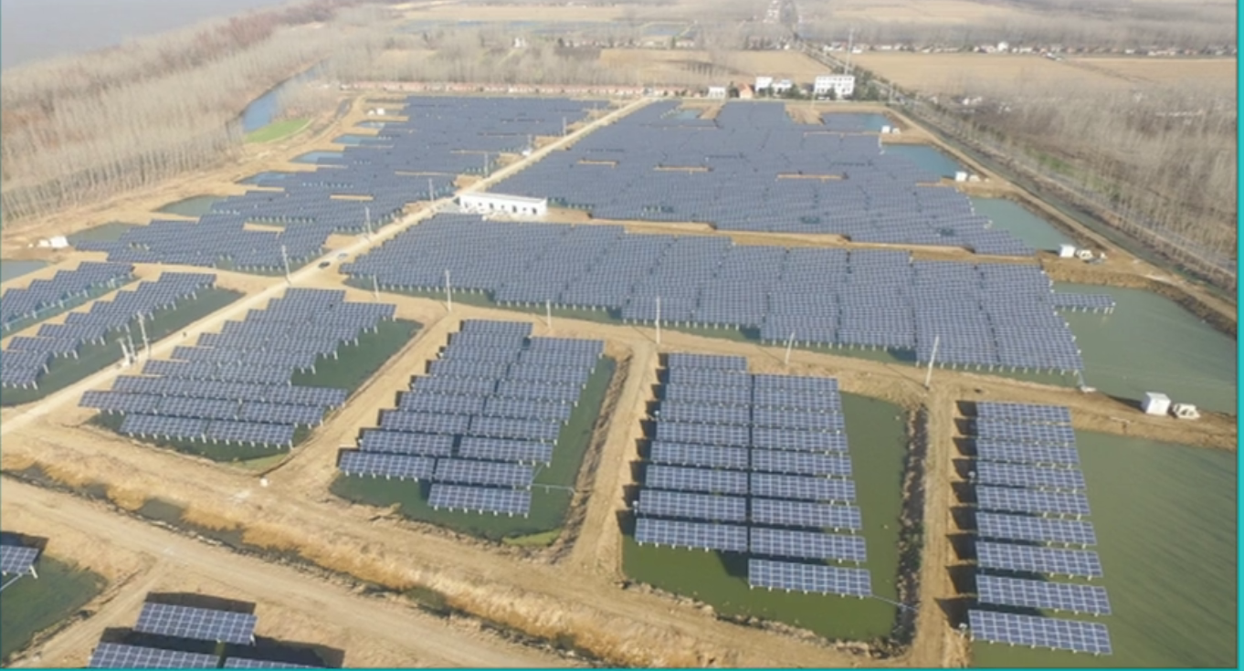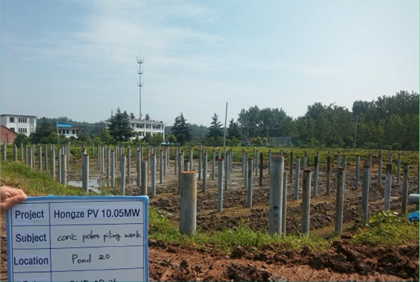 本项目厂址位于江苏省淮安市洪泽县三河镇五里牌村,装机容量为6+4.05MWp,建设于水面上,全部采用固定式支架安装,用地约160 亩。    本工程光伏区共分为10个发电子单元,共安装单体255W光伏组件39424块,配置500kW逆变器20台,1000kVA箱式变压器10台。以10kV电压等级接入淮安当地电网。配套建设10kV汇流站1座。